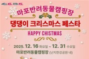 김학영기자 | 마포구(구청장 박강수)는 연말을 맞아 2025년 12월 16일부터 12월 31일까지 난지한강공원 내 마포반려동물캠핑장에서 반려동물과 특별한 연말 추억을 만들 수 있는 '댕댕이 크리스마스 페스타'를 개최한다. 행사가 열리는 마포반려동물캠핑장은 한강뷰 산책로와 반려동물 전용 놀이터, 프라이빗 데크와 텐트 등을 갖춘 도심 속 반려 가족 힐링 공간으로, 반려견이 자연 속에서 마음껏 뛰어놀 수 있어 많은 반려 가족이 찾는 명소다. 마포반려동물캠핑장은 이번 크리스마스 기간 동안 캠핑장 전체를 성탄 분위기로 꾸미고, 포토존을 확대해 방문객들에게 특별한 겨울 추억을 선사할 계획이다. 이번 '댕댕이 크리스마스 산타 페스타' 기간에는 반려견 산타복·크리스마스 의상과 각종 소품을 비치하고, 보호자가 직접 준비한 크리스마스 의상도 함께 활용할 수 있도록 해 반려견 성탄 복장 체험과 포토존 인증샷 이벤트를 진행한다. 참가자들은 캠핑장 곳곳에 조성된 트리 장식과 트러스 포토존 등에서 크리스마스 콘셉트로 자유롭게 사진을 촬영한 뒤, 개인 SNS에 후기를 게시하고 이벤트에 참여할 수 있다. 이 가운데 우수 후기 30팀을 선정해 프리미엄 반려동물 장난감과 사료 등 경품을 제